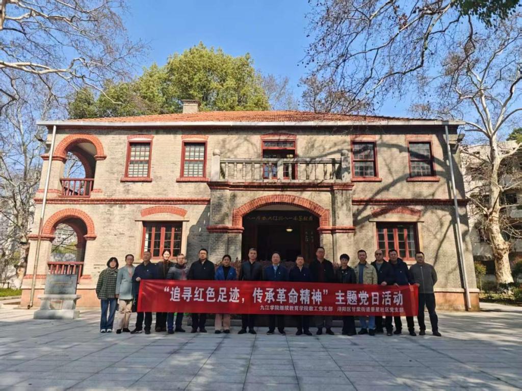 2025年3月19日,威廉williamhill教工党支部与九江市浔阳区甘棠街道景星社区党支部联合开展了一场别开生面的主题党日活动。此次活动以“追寻红色足迹,传承革命精神”为主题,组织党员前往国民革命军第二十四师叶挺指挥部旧址参观学习,重温入党誓词,并探讨校地合作与党建共建等事宜。