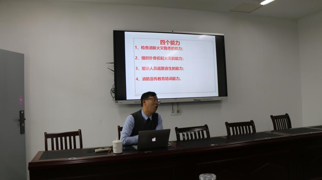 演练分为理论学习和疏散演练两个部分。陶涛讲师就火灾预防、火场自救、逃生方法和消防器材使用等方面进行了生动细致的讲解,并结合正式案例与教职工进行互动交流。
